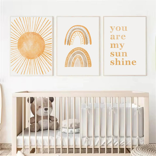 Boho Rainbow & Sun “You Are My Sunshine” Nursery Canvas