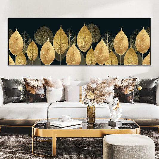 Black & Gold Monstera & Ginkgo Leaves Canvas Print