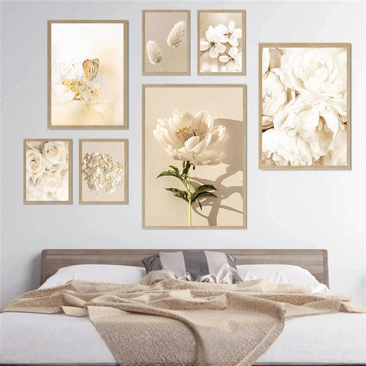Light Gold & White Leaf Framed Canvas Print - Set Of 3