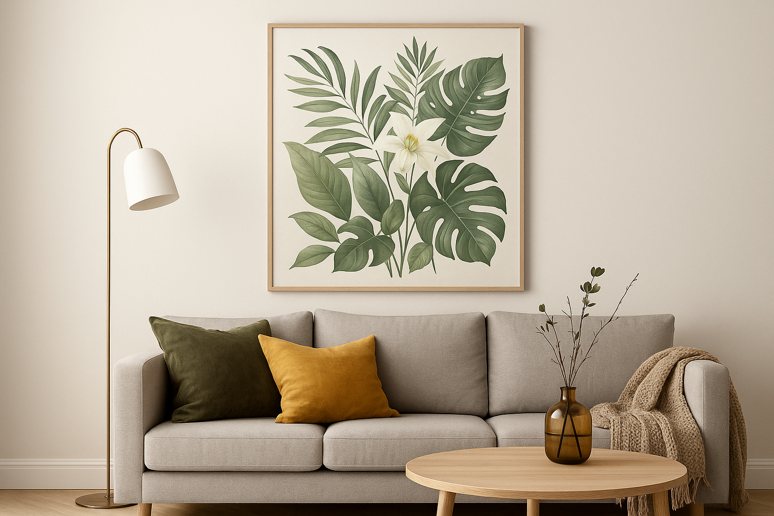 Geometric Green Plants Abstract Canvas - Set Of 3
