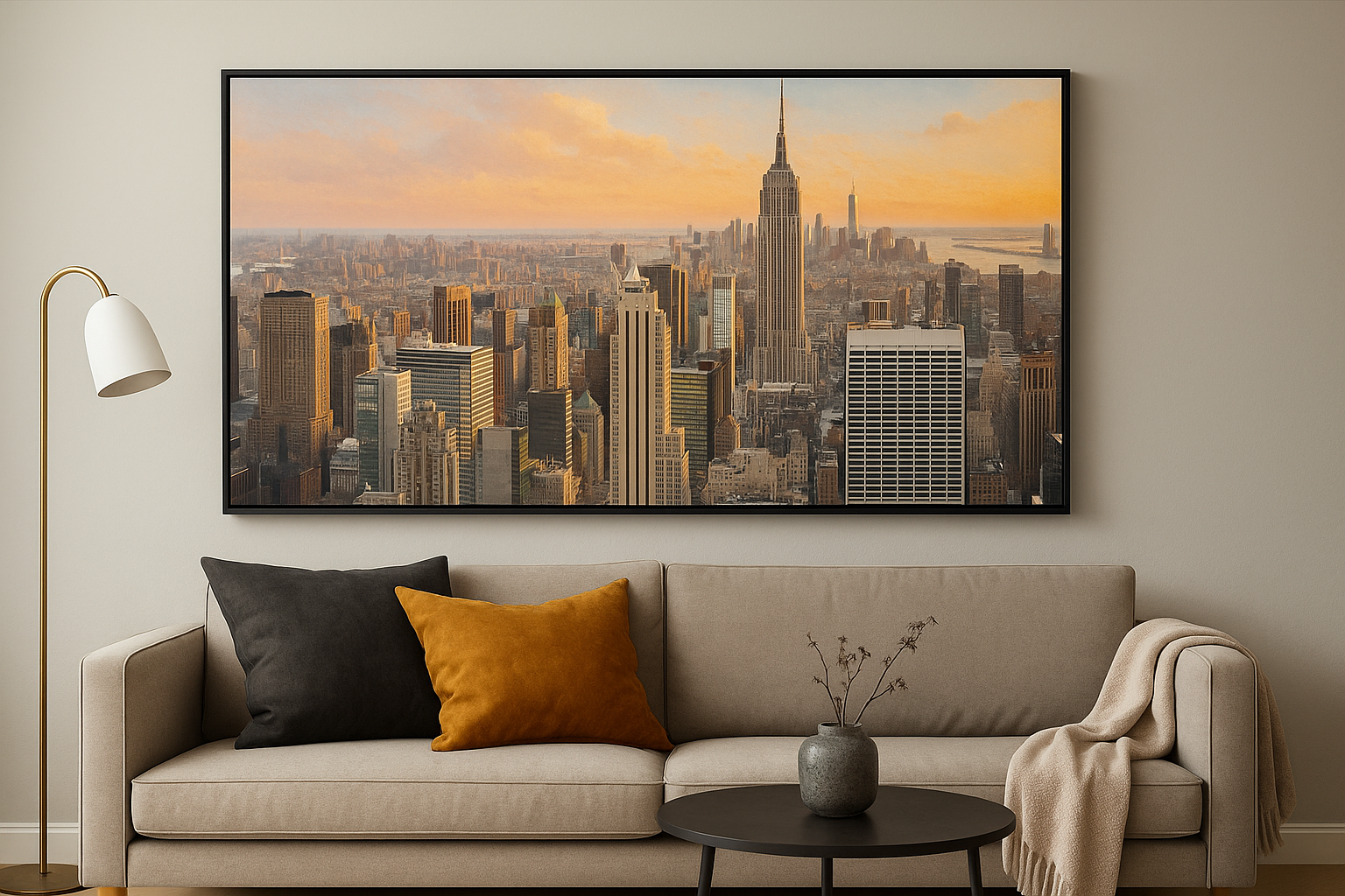 Abstract Romantic Lovers Cityscape Autumn Canvas - Set Of 3