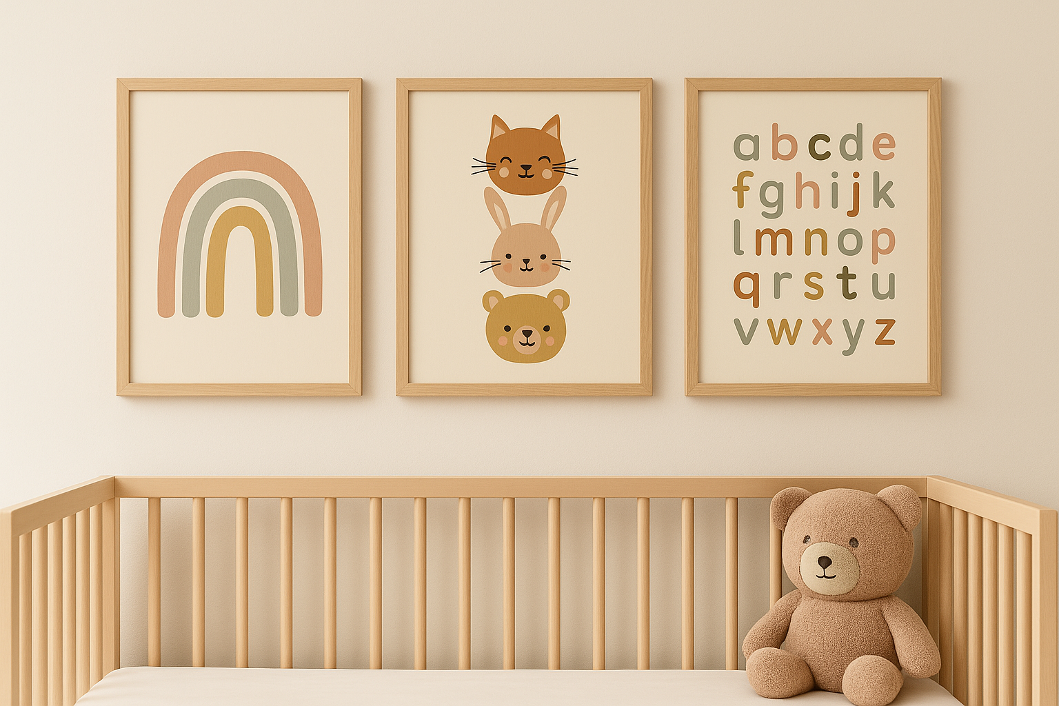 Moon, Stars, Rabbit & Bear Kids Canvas Print