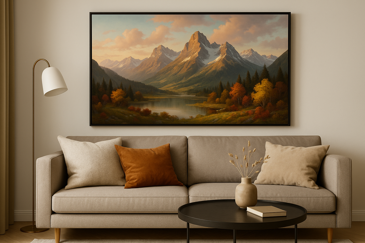 Golden Snow Mountain & Lake Canvas Print - Set Of 3