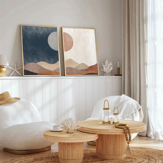 Sun, Moon & Mountain Boho Mid-Century Canvas Print