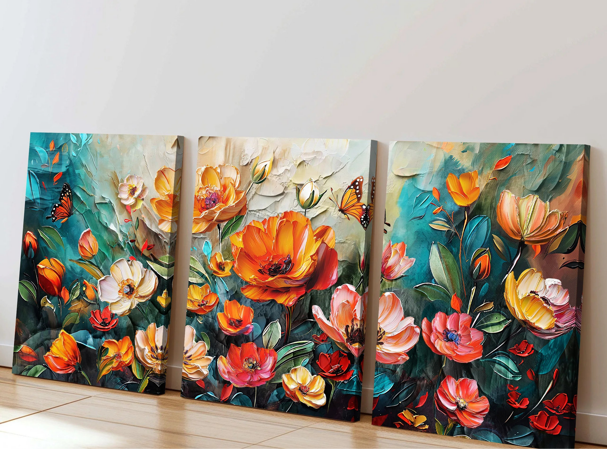 Elegant abstract floral wall art featuring golden textured details. This canvas print adds a sophisticated touch to your bedroom, living room, or home décor. The warm tones and abstract design make it a versatile centerpiece for modern interiors.