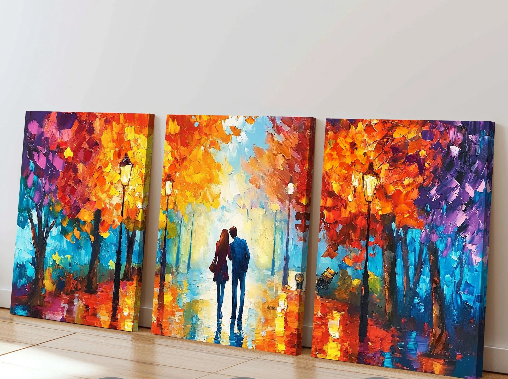 Romantic Autumn Lovers Cityscape Print - Set Of 3